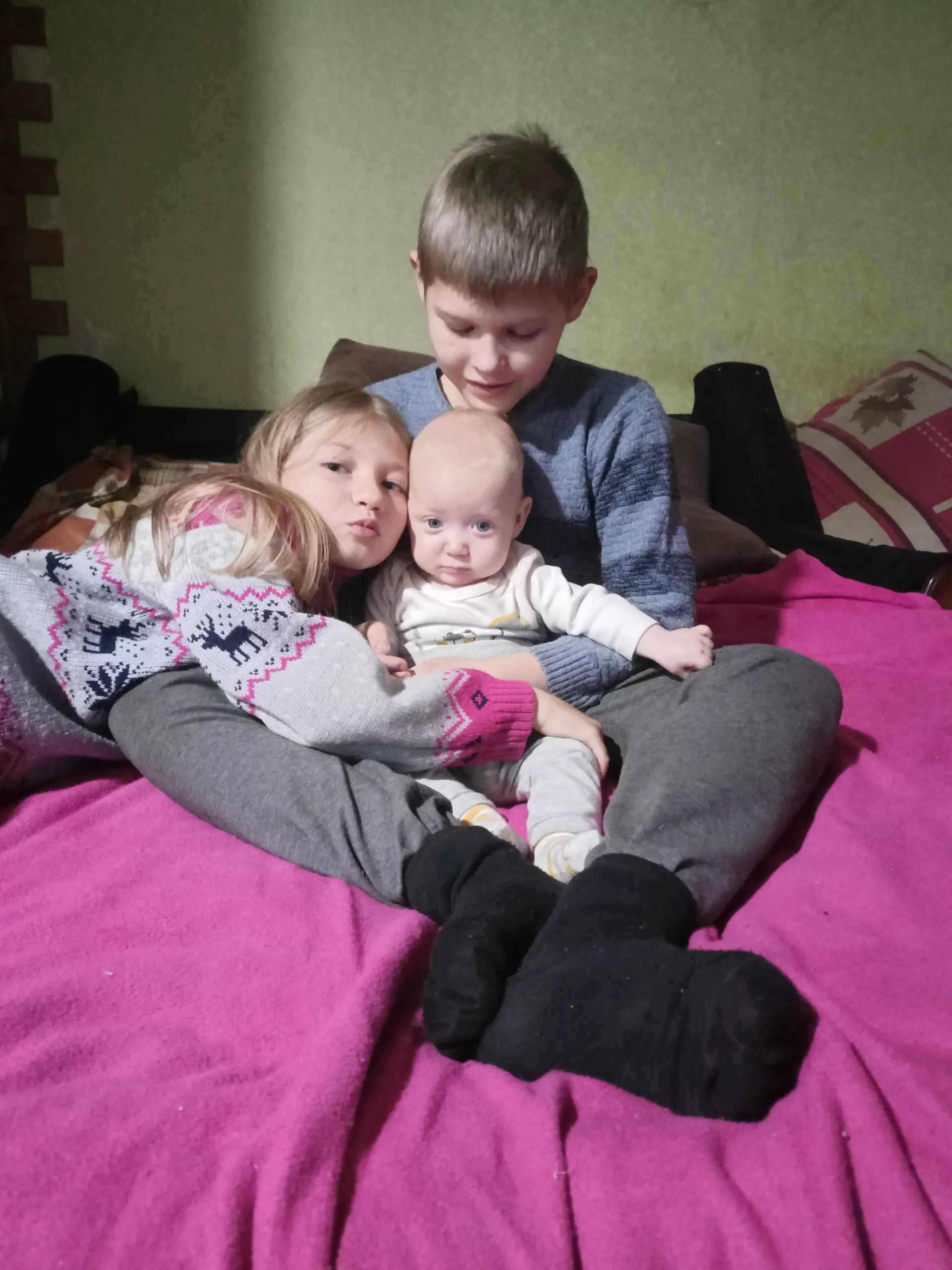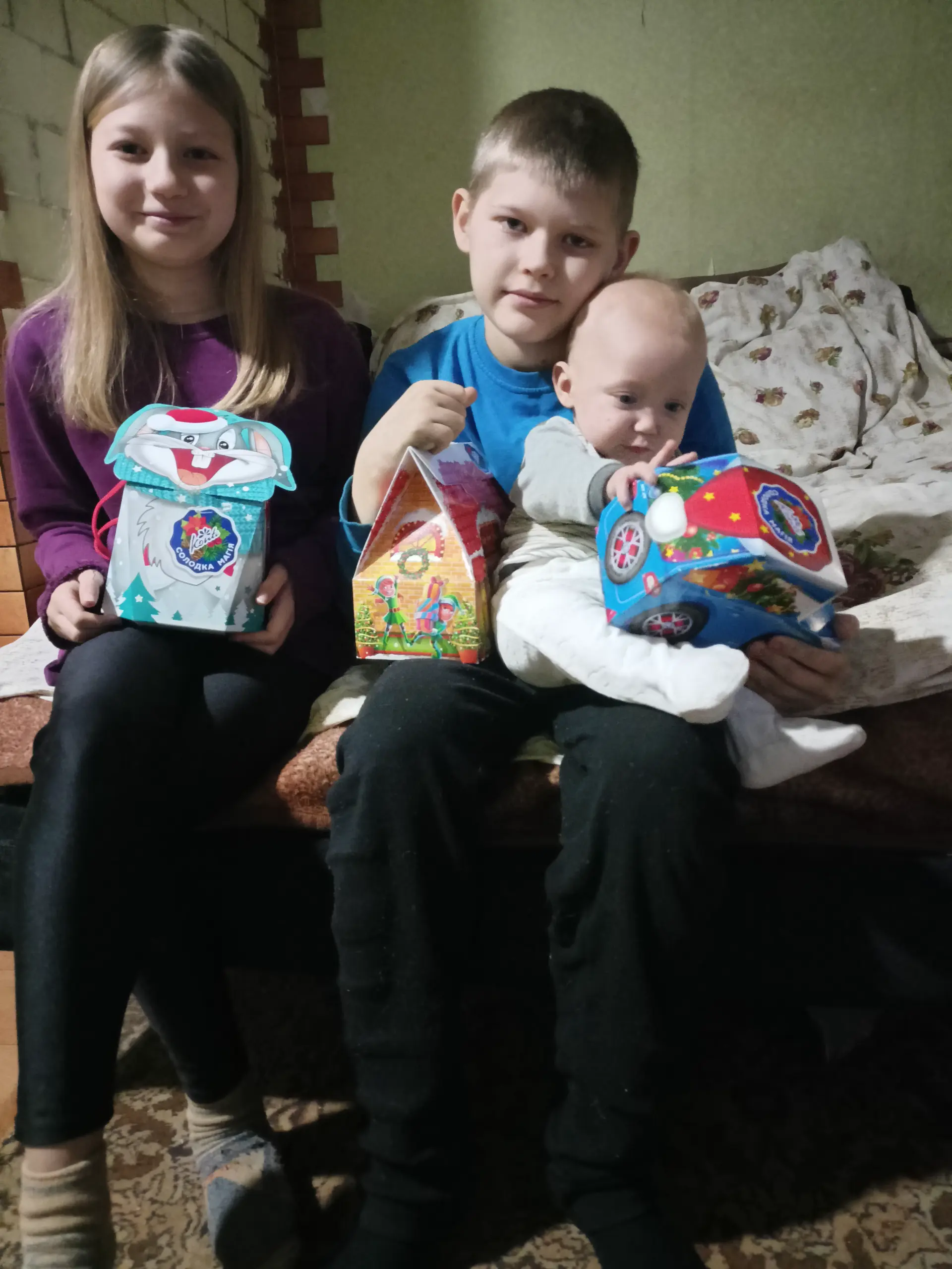 We live in a war zone, I have a baby and two other children. I have enough money for services and home payments. I really want to please the children with something so interesting for them, some toys