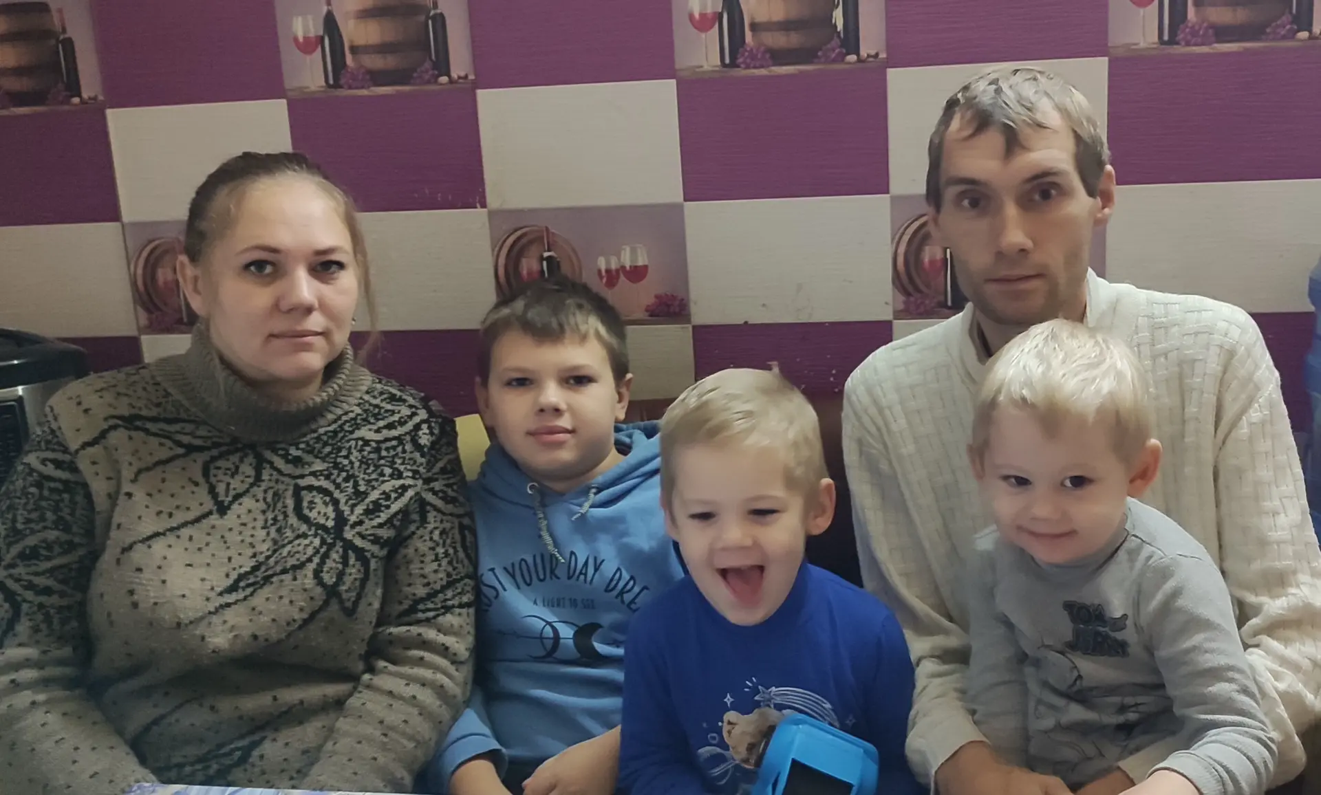 We live in a temporary accommodation center. I work here as a volunteer. I am a single mother, I have a son, an underage daughter, and a retired mother.